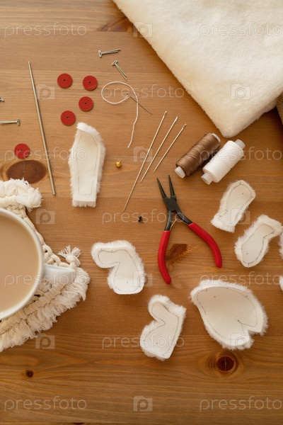 Материал для создания меховой игрушки лежит на столе, вид сверху