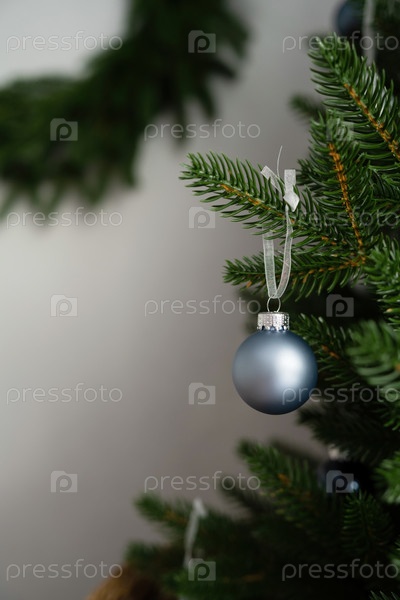 Игрушка из шариков висит на искусственной елке в комнате