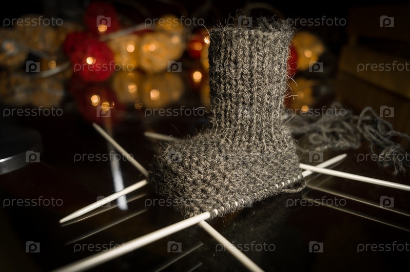 Вязание детских пинеток на спицах. Ручное вязание детских теплых вещей для малышей и новорожденных. Хобби. Выборочный фокус
