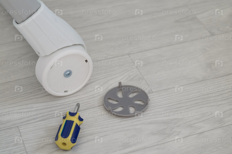Прикручивание отверткой пластикового колеса детской мебели. Сборка колеса. Сборка детского стульчика. Выборочный фокус