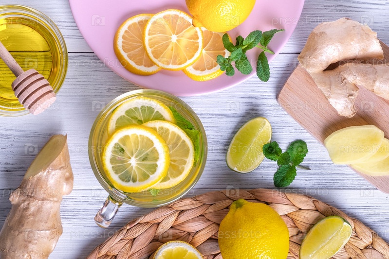 Зеленый чай с лимоном, имбирем и медом