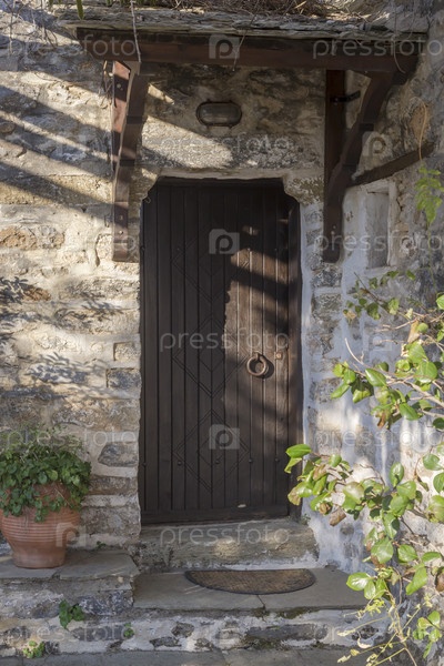 Фон старой бежевой каменистой стены с дверью