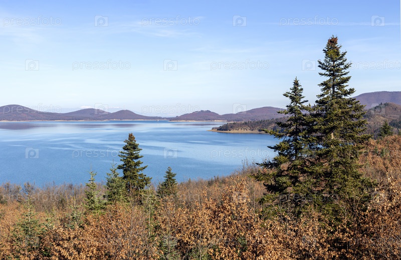 Панорамный вид на искусственное озеро Пластирас (префектура Кардица, Фессалия, Греция)