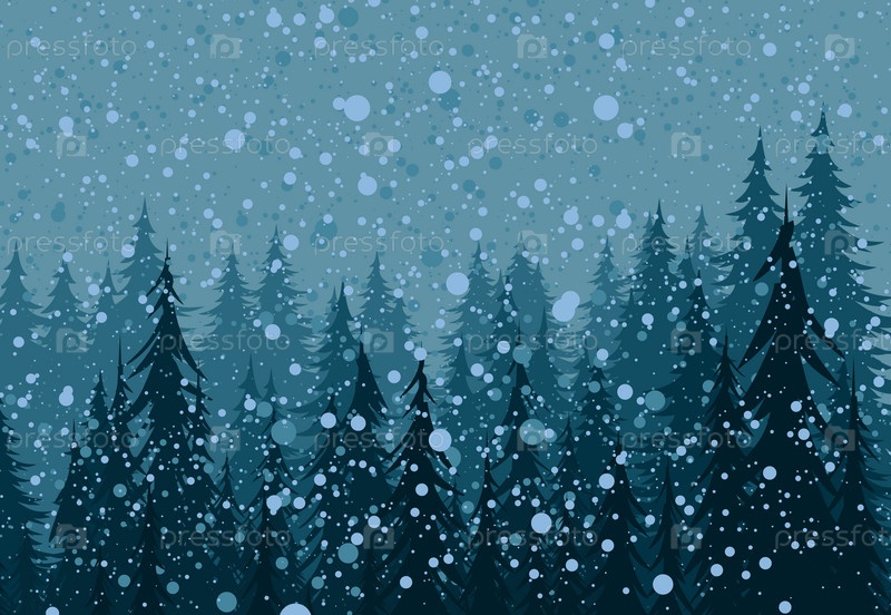 Зимний пейзаж с хвойным лесом и снегопадом