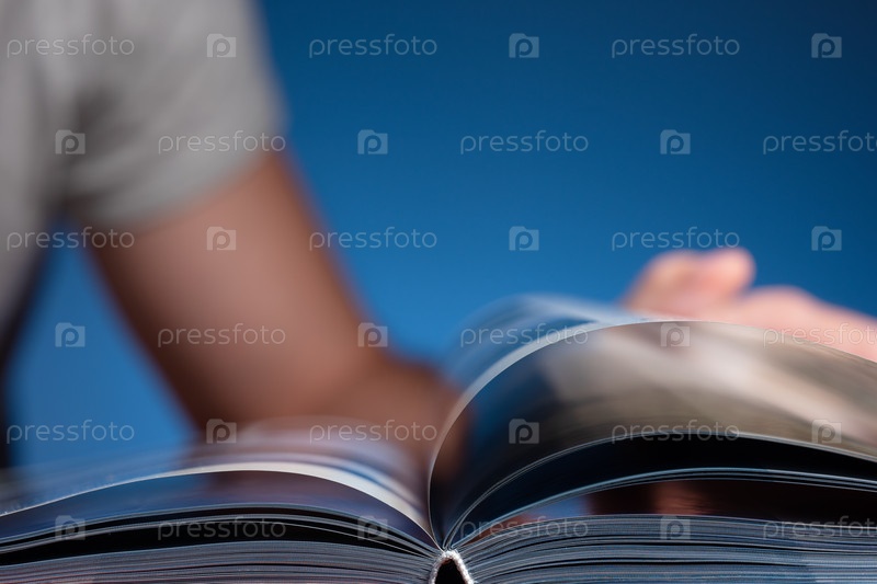 Мужчина листает книгу. Сосредоточьтесь на переплете книг