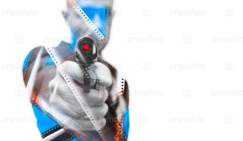 Опасный контент: Силуэт мужчины с ружьем. Смешанная техника