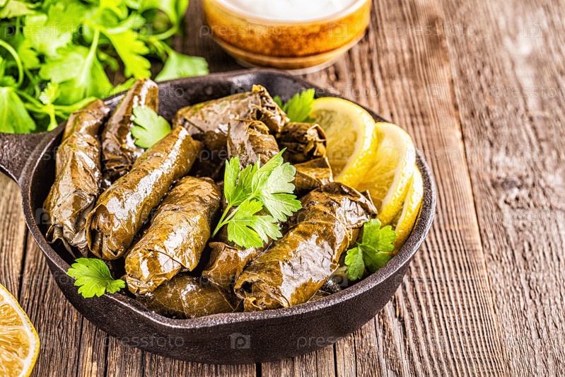 Долма, фаршированные виноградные листья с рисом и мясом