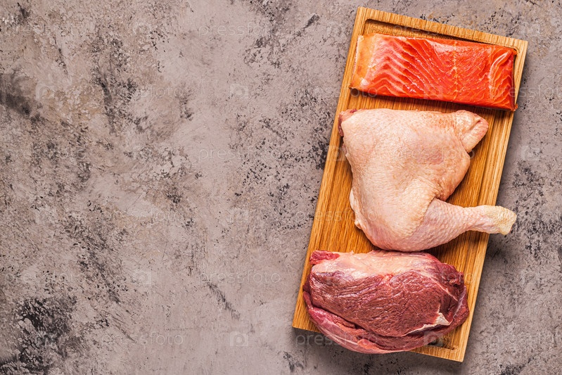 Мясо, рыба, курица на доске