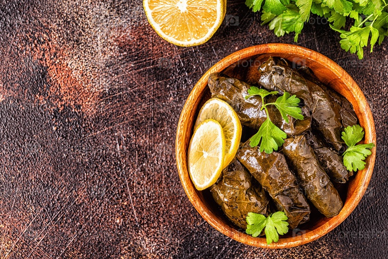 Долма, фаршированные виноградные листья с рисом и мясом