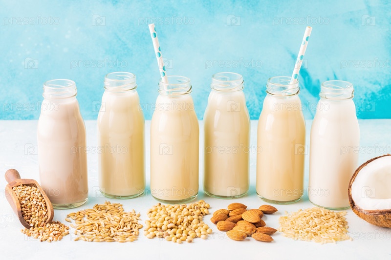 Бутылки альтернативного молока и ингредиента