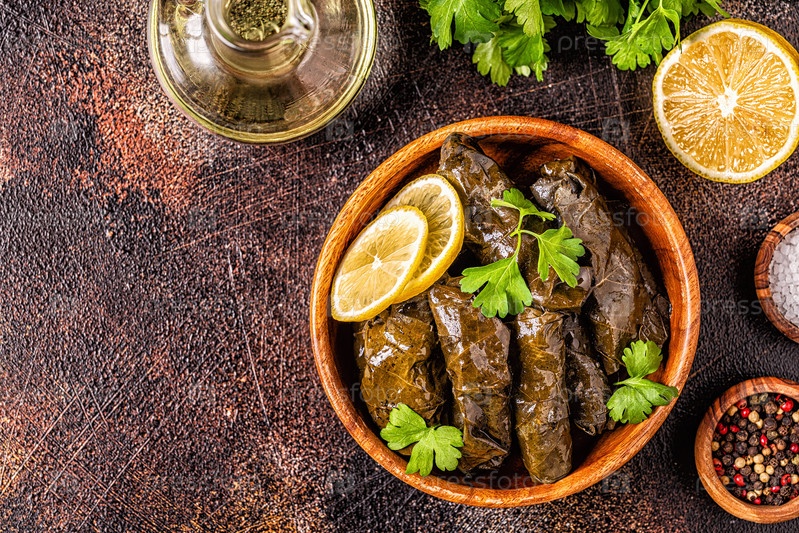 Долма, фаршированные виноградные листья с рисом и мясом