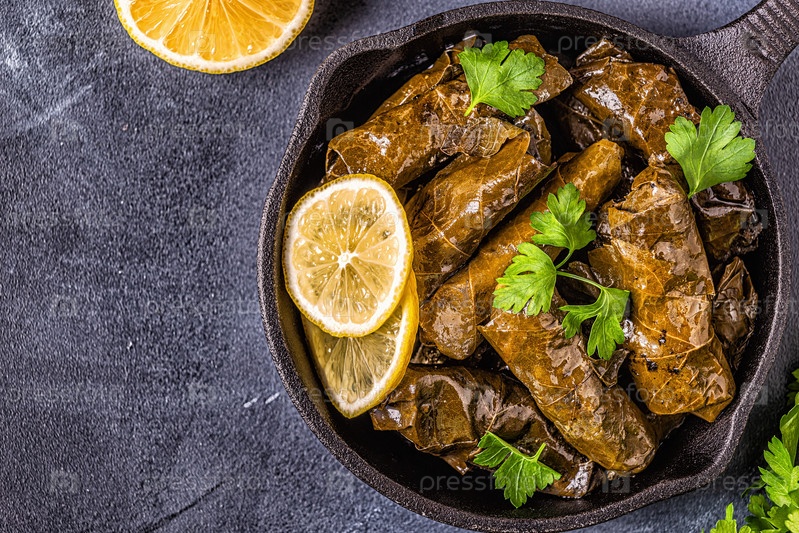 Долма, фаршированные виноградные листья с рисом и мясом
