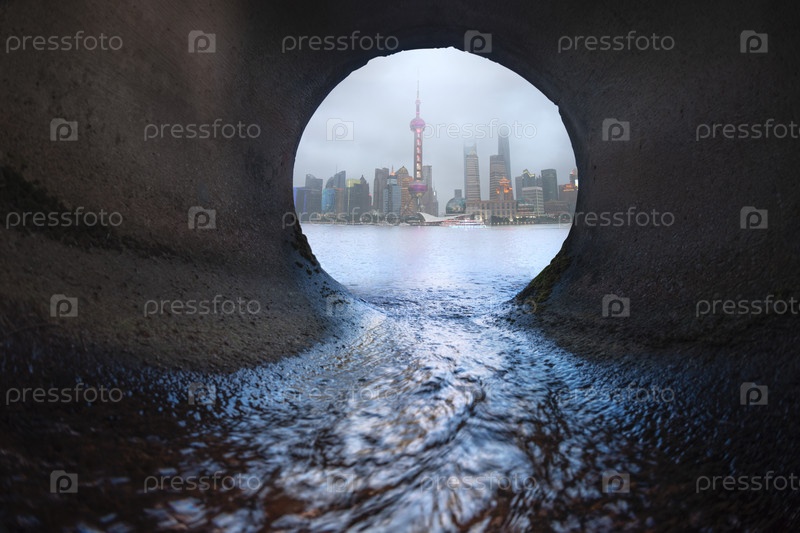 Вид на мегаполис из водостока