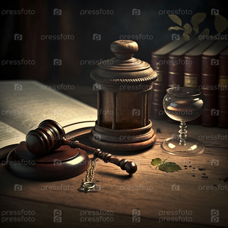 Концепция закона. молоток судьи на столе (The concept of law. Judge's hammer on the table)
