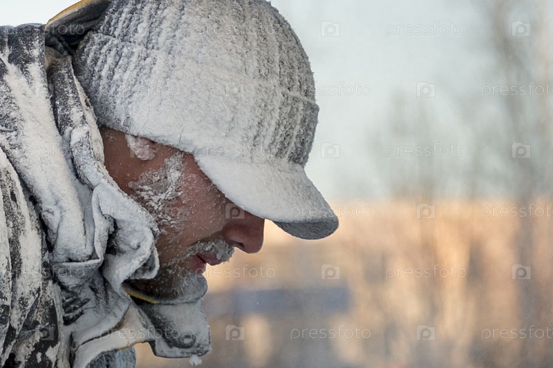 Портрет мужчины, покрытого инеем