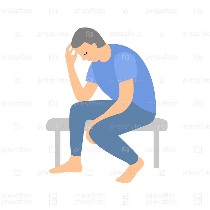Человек думает. эмоция и поза. мужчина держится за голову и размышляет