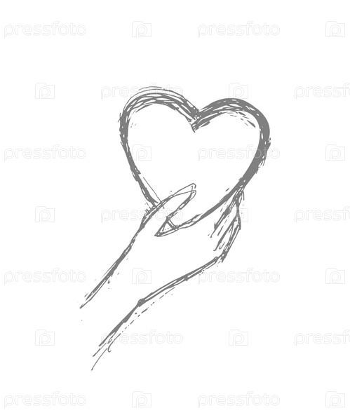 Сердце в руке. День Святого валентина. Романтичный набросок изолят