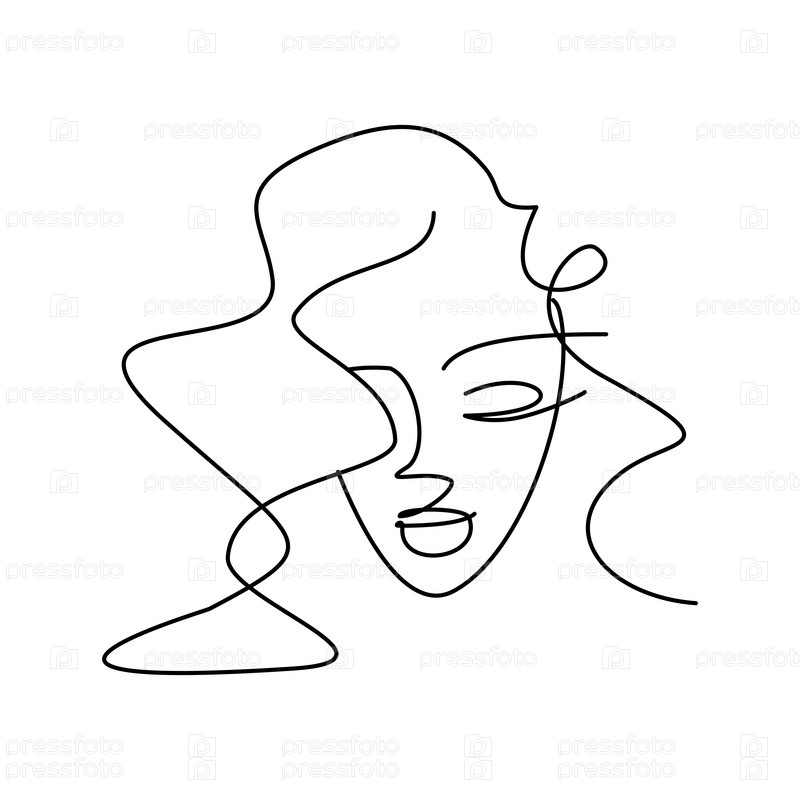 Лицо девушки одной линией. Портрет иконка минимализм