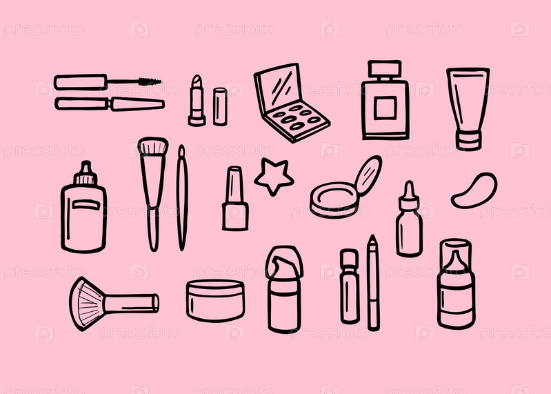Косметика для лица - набор иконок. Женские принадлежности для макияжа