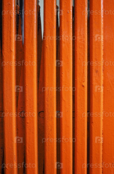 Старый стальной металлический ставень, окрашенный в оранжевый цвет
