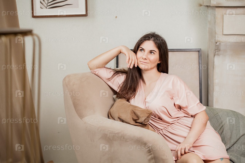 Молодая женщина в халате пьет чай дома