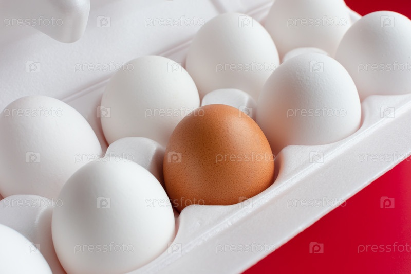 Куриные яйца в упаковке , одно другого цвета
