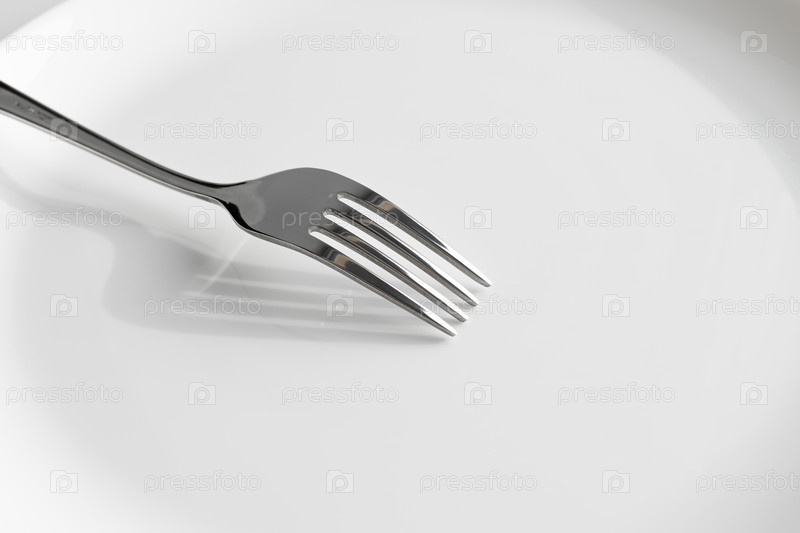 Вилка на белой тарелке,