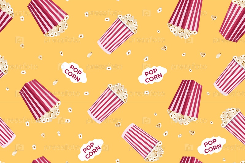 Бесшовный узор из попкорна. Векторная иллюстрация на желтом фоне