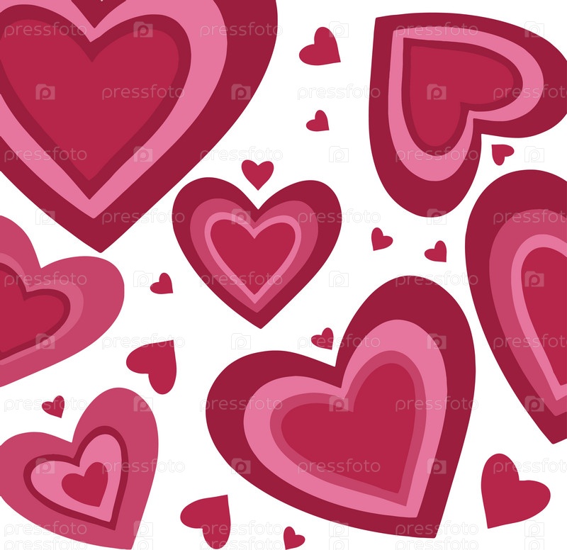 Современный абстрактный фон с розовыми сердечками. Векторная иллюстрация на белом фоне