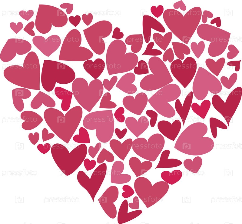 Сердце, символ любви и Дня святого Валентина. Большое сердце из маленьких разноцветных сердечек. Векторная иллюстрация