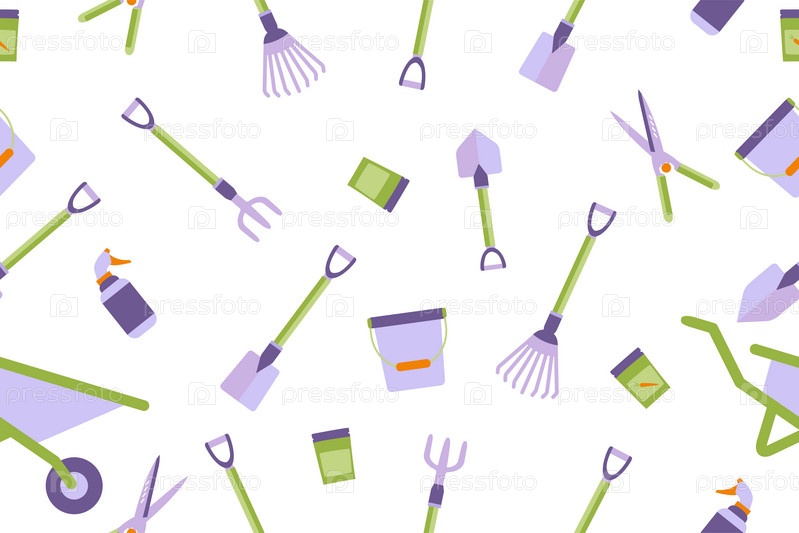 Фон различных садовых и садовых инструментов. Яркая иллюстрация выделена на белом фоне