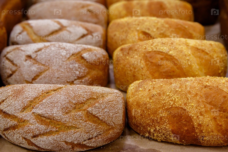 Буханки хлеба на полке или витрине в магазине