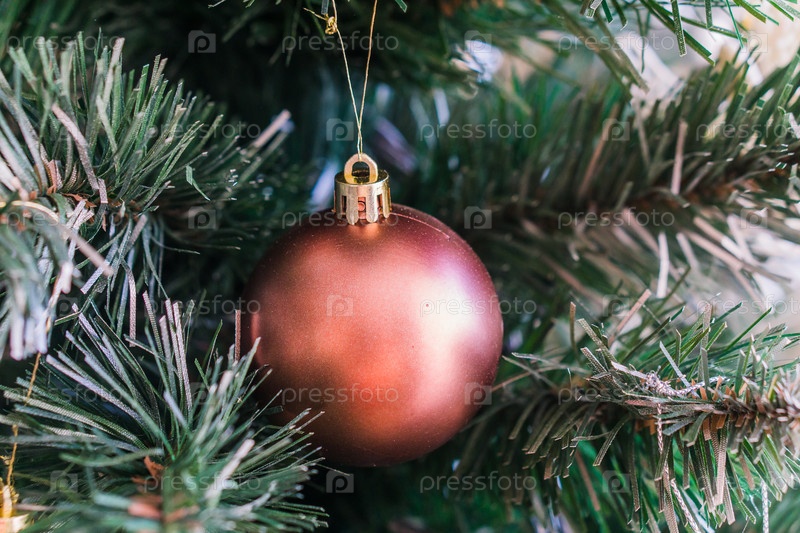 Новогодние игрушки на ветке елки