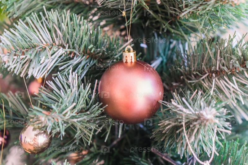 Новогодние игрушки на ветке елки