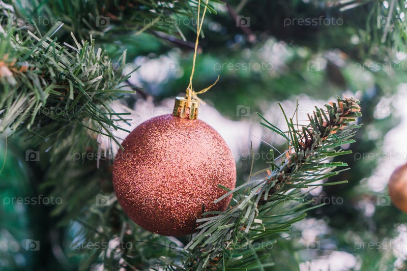 Новогодние игрушки на ветке елки