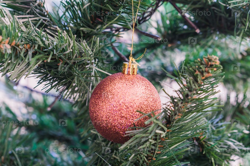 Новогодние игрушки на ветке елки