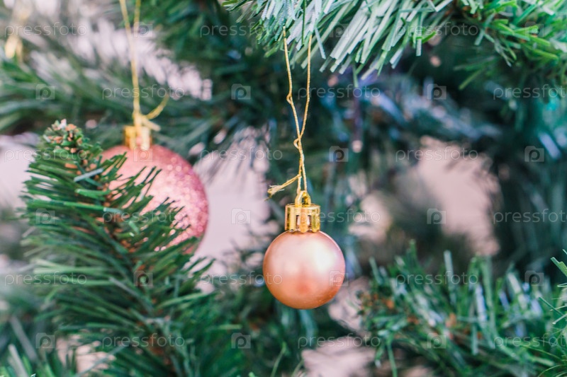Новогодние игрушки на ветке елки