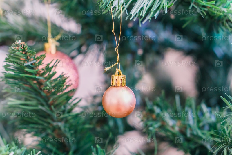 Новогодние игрушки на ветке елки