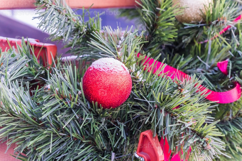 Новогодние игрушки на ветке елки