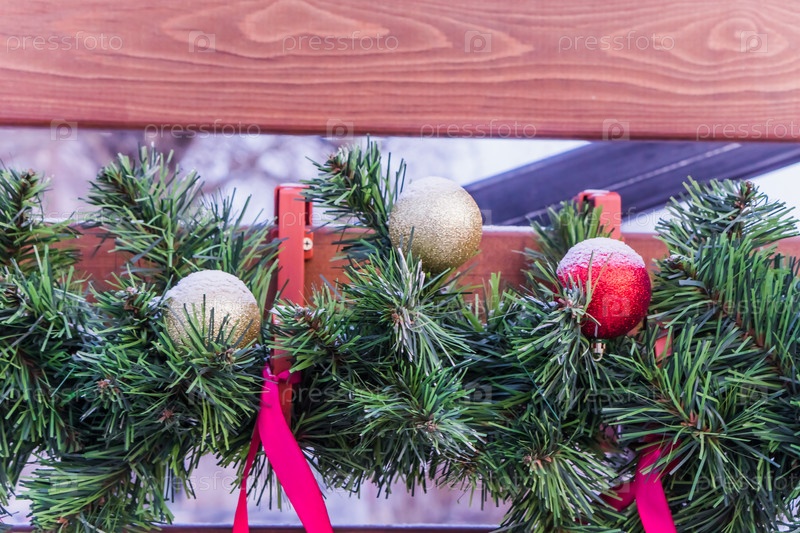 Новогодние игрушки на ветке елки