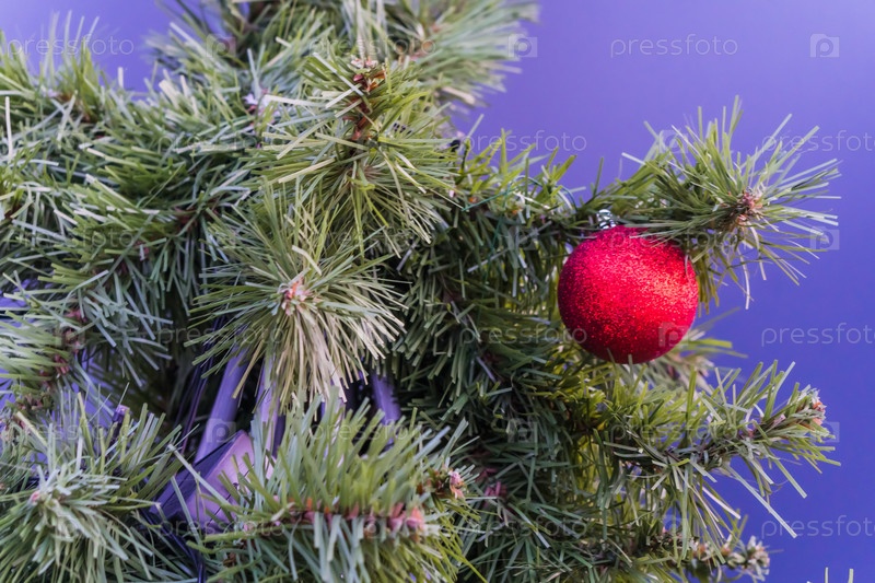 Новогодние игрушки на ветке елки