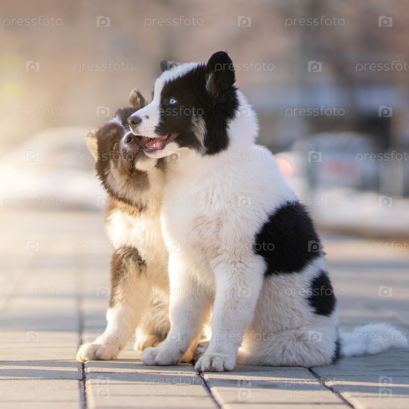 Щенки якутской лайки на улице