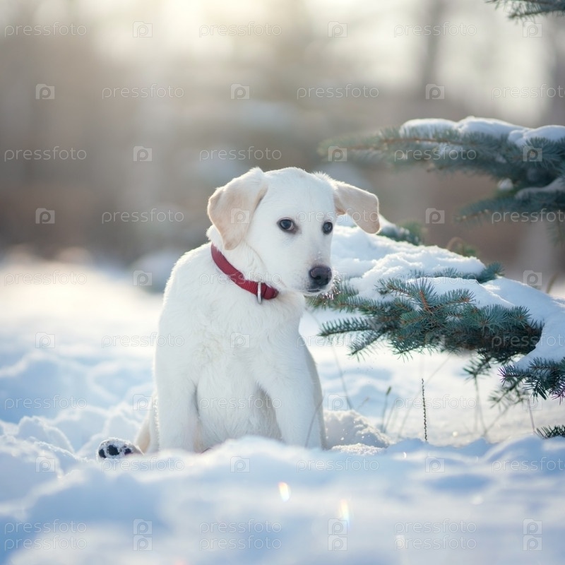 Щенок лабрадора зимой