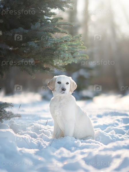 Щенок лабрадора зимой