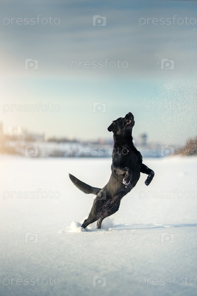 Лабрадор ретривер собака прыгает