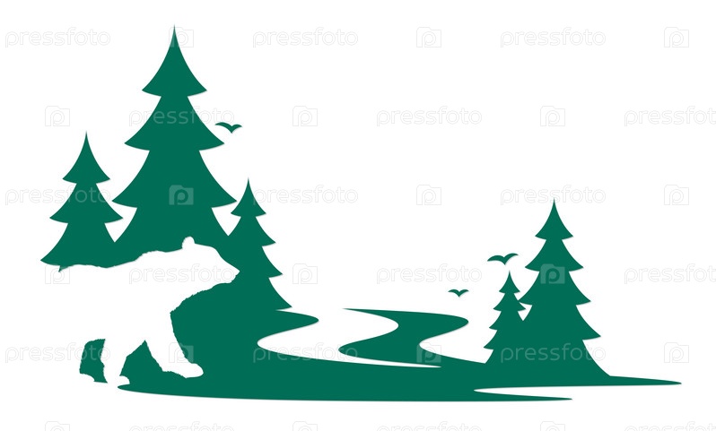Логотип хвойного леса с медведем