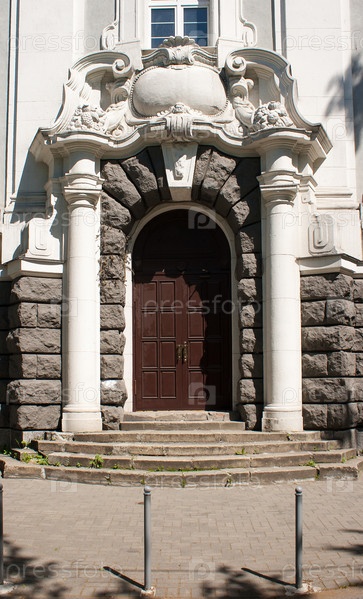 Входная дверь украшена барельефами