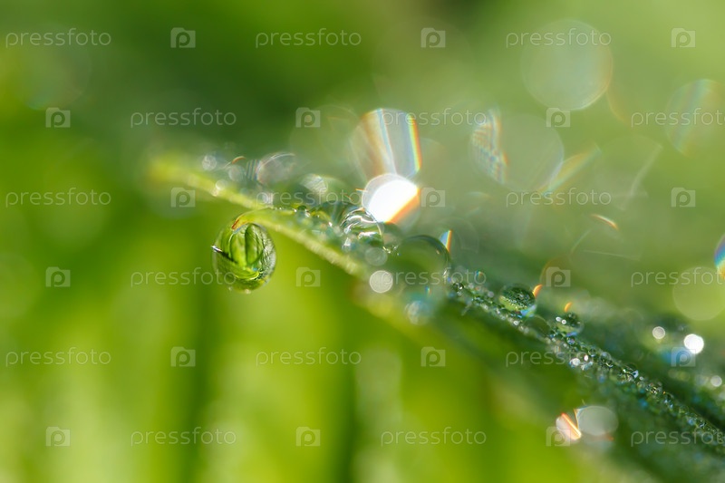 Абстрактный фон травы с каплями дождя, малой глубиной резкости и боке