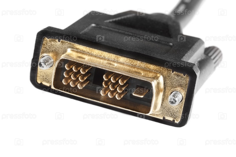 Стандартный разъем DVI с позолоченным корпусом, крупным планом на белом фоне
