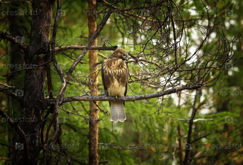 Хищная птица на ветке